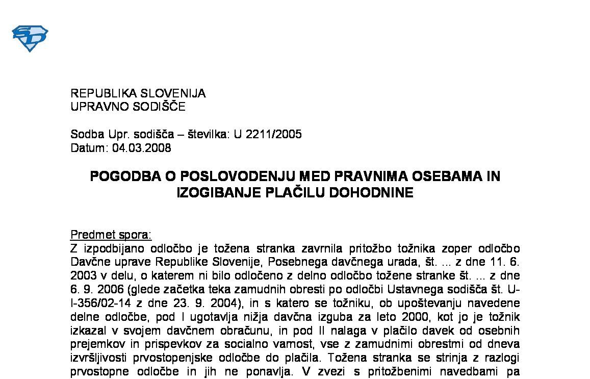 PREJEM POSLOVNEGA DELEŽA V DRUŽBI OB ANGAŽIRANJU PRI SANACIJI DRUŽBE – Darilo, ki se obdavčuje po ZDDD, ali dohodek obdavčen po ZDoh-2 (I U 1495/2022-13) 20.11.2024 10.07.2025