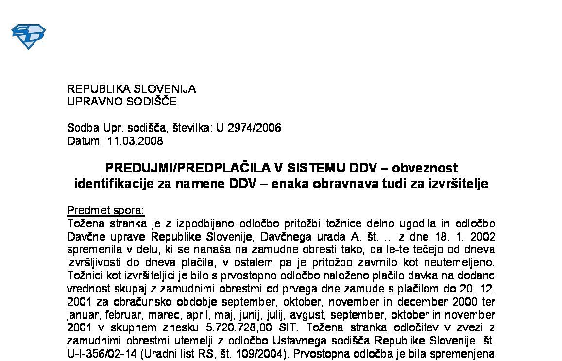 IZPOLNJEVANJE POGOJEV ZA DOBAVO BLAGA ZNOTRAJ UNIJE, OPROŠČENO PLAČILA DDV NA PODLAGI 46. ČLENA ZDDV-1 – Nepopolne CMR listine (I U 1704/2021-38) 27.11.2024 15.10.2025