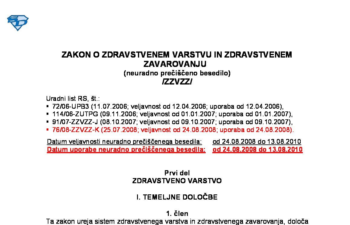 | ZAKON O ZDRAVSTVENEM VARSTVU IN ZDRAVSTVENEM ZAVAROVANJU (ZZVZZ - neuradno prečiščeno besedilo) | 01.04.2022 | [!] | 25.07.2022 | 31.03.2022 |