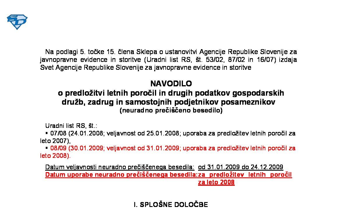 Navodilo o predložitvi letnih in zaključnih poročil ter drugih podatkov poslovnih subjektov (NUPB - neuradno prečiščeno besedilo) 23.12.2017 10.01.2018