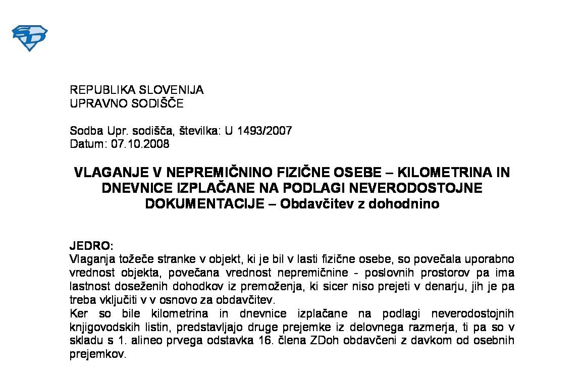 ODMERA DOHODNINE OD DOHODKA ZA DELO V TUJINI – Dokazovanje dejanske dnevne prisotnosti za delo v tujini (II U 115/2023-16) 19.02.2025 04.11.2025