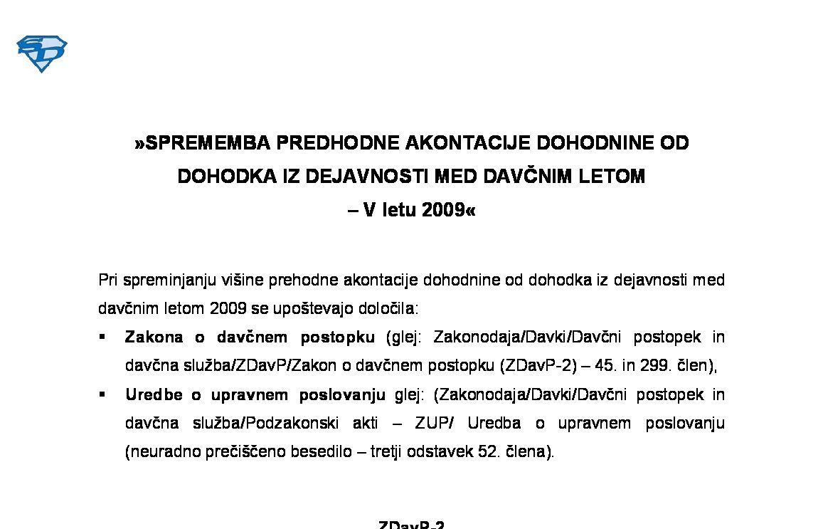 PLAČEVANJE PREDHODNE AKONTACIJE DOHODNINE / AKONTACIJE DOHODNINE OD DOHODKA IZ DEJAVNOSTI (obračun DOHDej) – v letu 2026 12.12.2025