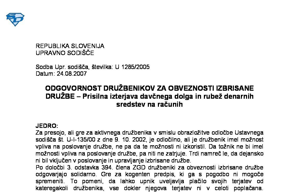 POSLOVODNA OSEBA IN DRUŽBENIK ZAVODA – Zavarovalna podlaga 040 – Prispevki za PIZ in prispevki za druga socialna zavarovanja (I U 880/2021-15) 19.06.2024 11.03.2025