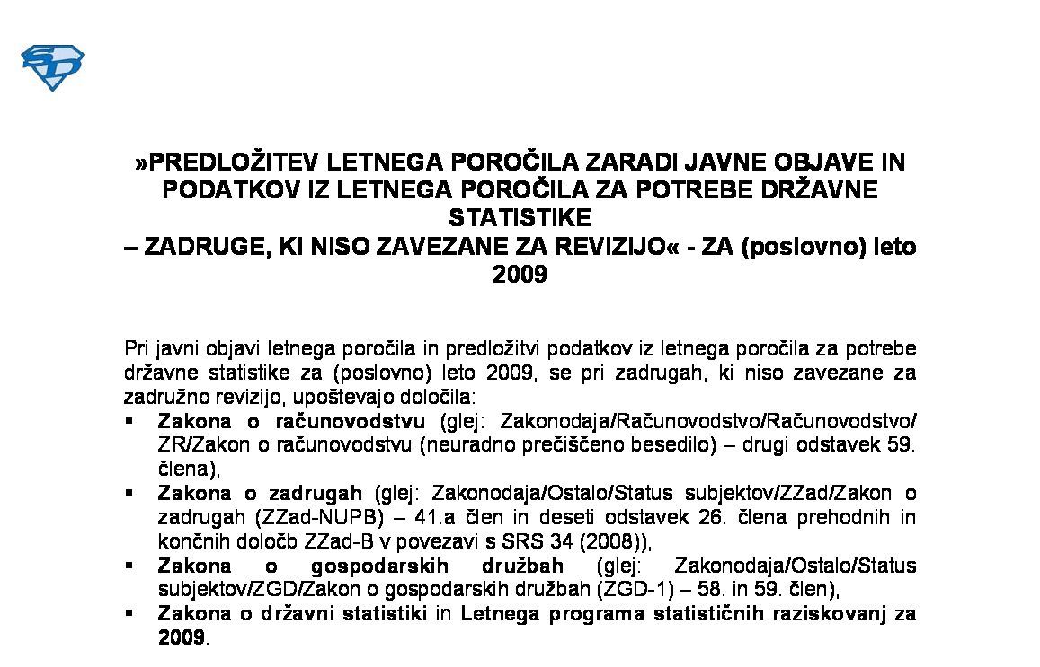 PREDLOŽITEV LETNEGA POROČILA IN PODATKOV IZ LETNEGA POROČILA ZA POTREBE DRŽAVNE STATISTIKE – ZADRUGE - ZA (poslovno/koledarsko) leto 2024 31.01.2025