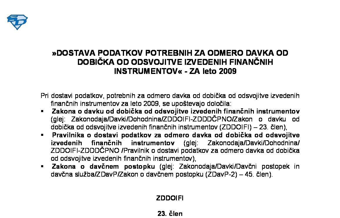 NAPOVED ZA ODMERO DAVKA OD DOBIČKA OD ODSVOJITVE IZVEDENIH FINANČNIH INSTRUMENTOV (DDOIFI) - ZA leto 2024 29.01.2025