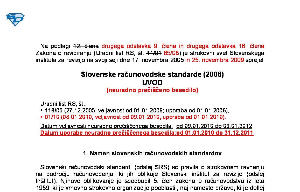 Podjetja, ki imajo poslovno leto enako koledarskemu začnejo Uvod v SRS (NUPB) uporabljati s 1. januarjem 2010, preostala podjetja pa s prvim poslovnim letom, ki se začne po tem datumu. Članek nima prilog!
