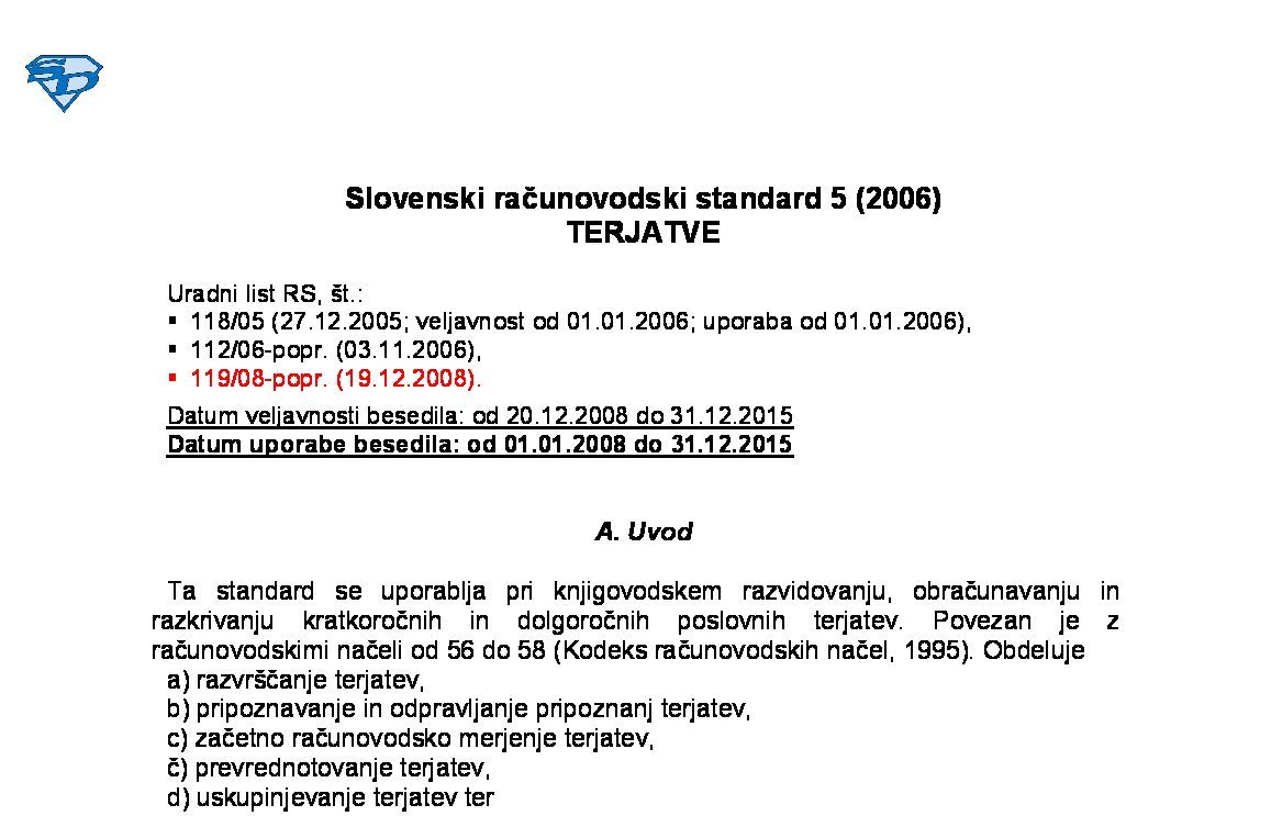 09. SRS 9 (2006) - Dolgoročni dolgovi (neuradno prečiščeno besedilo) 01.01.2015 [!] 31.12.2015 12.01.2015