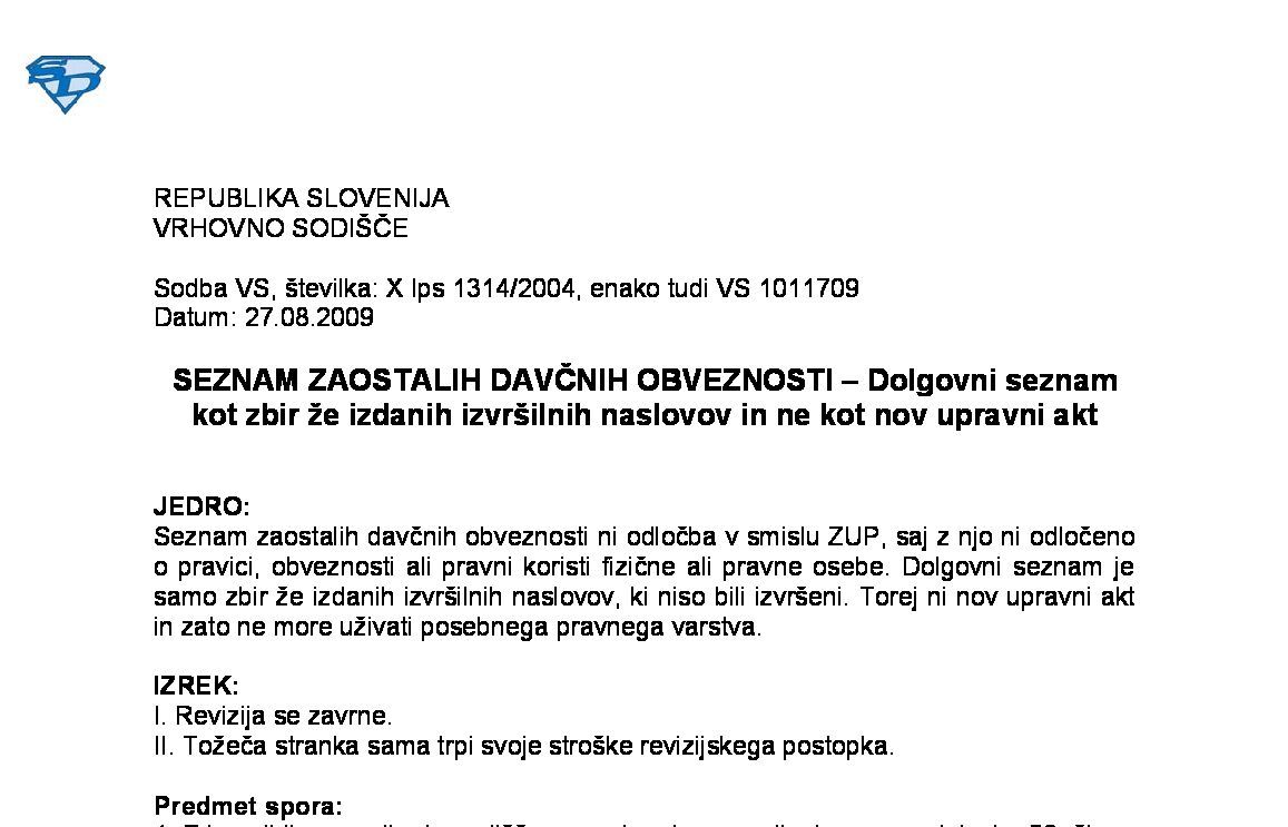 ODLOG UGOTAVLJANJA DAVČNE OBVEZNOSTI – Samoprijava (X Ips 31/2023) 02.10.2024 06.11.2024