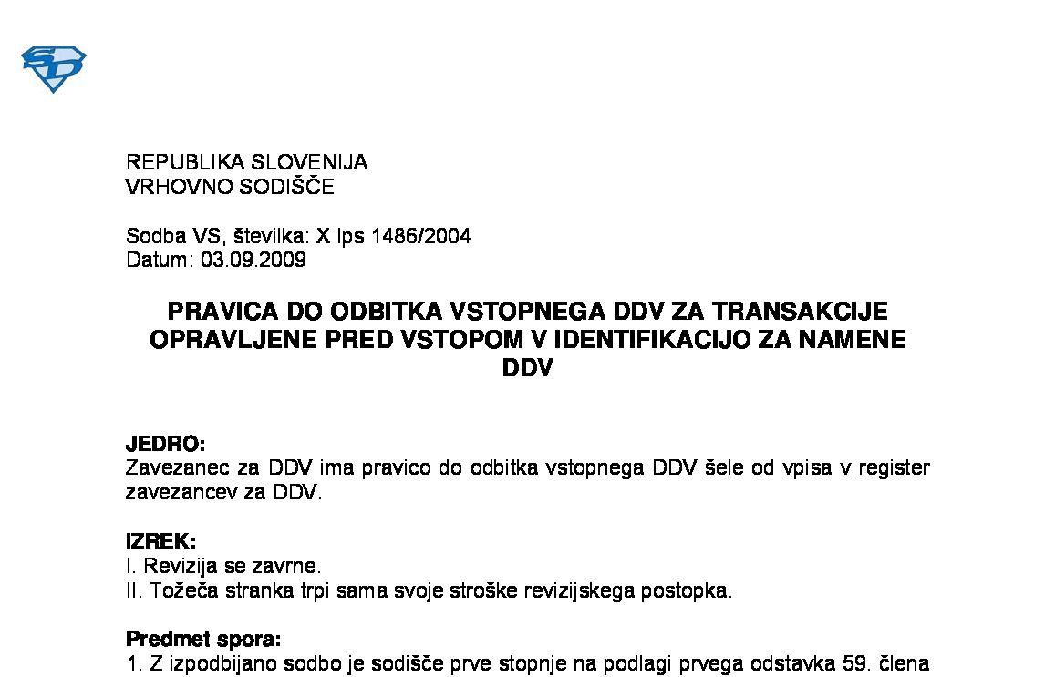 ODVETNIŠKA DEJAVNOST – Brezplačno zastopanje strank v postopkih pred sodišči – Obdavčitev prejetih povračil stroškov postopka (X Ips 8/2017) 13.09.2023 14.02.2024