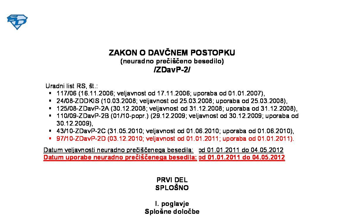 ZAKON O DAVČNEM POSTOPKU (ZDavP-2 - neuradno prečiščeno besedilo) 11.12.2024 [!] 31.12.2025 27.11.2024