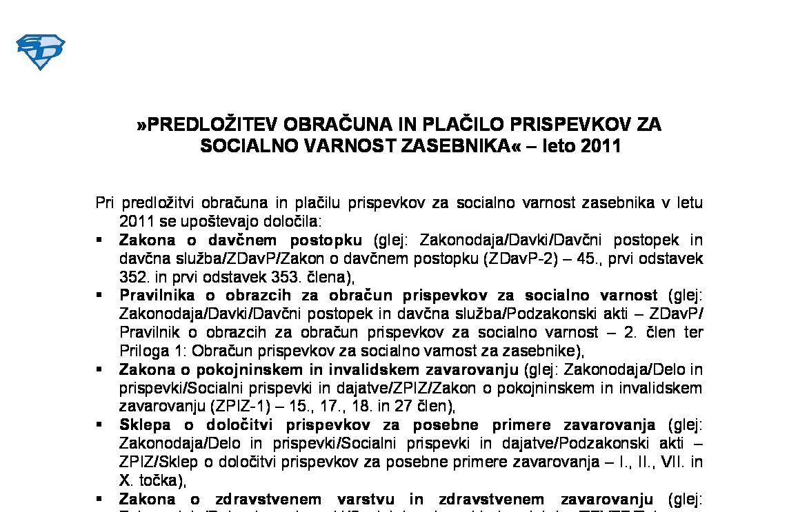 PREDLOŽITEV OBRAČUNA IN PLAČILO PRISPEVKOV ZA SOCIALNO VARNOST ZASEBNIKA (PSV zasebniki - obračun OPSVZ) - leto 2026 13.01.2026