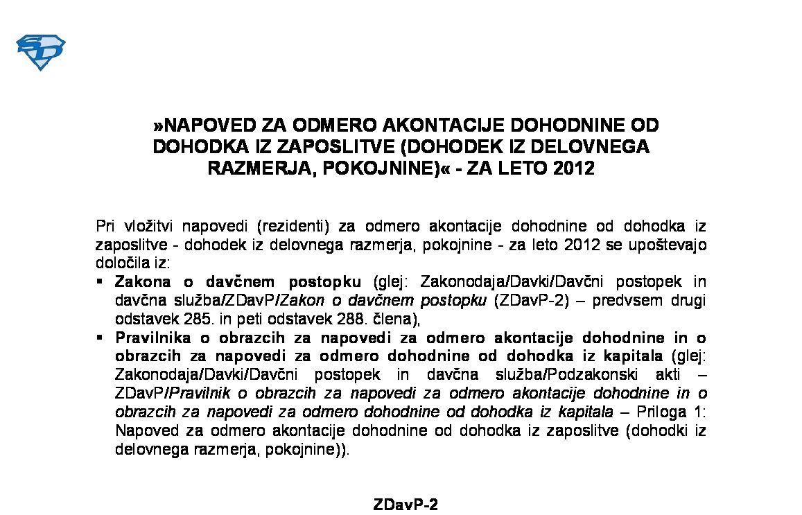 NAPOVED ZA ODMERO AKONTACIJE DOHODNINE OD DRUGIH DOHODKOV ZA REZIDENTE – v letu 2026 02.02.2026