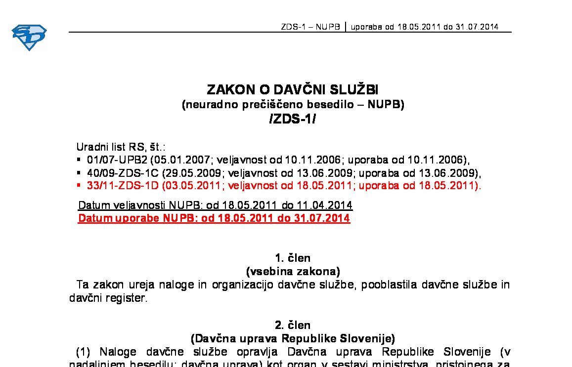 Posebnost glede uporabe po prehodnih in končnih določbah ZDS-1D - glej 7., 8. (tj. spremenjen 6. člen zakona) in 9. (tj. spremenjen 12. člen in črtana sedmma točka 13. člena zakona) člen. Članek nima prilog!