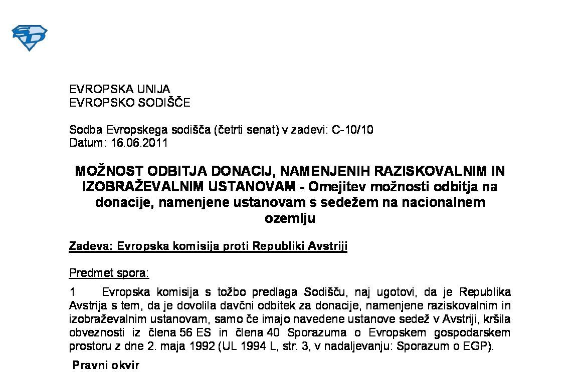 DOHODNINA – IZRAČUN OSNOVNEGA OSEBNEGA ODBITKA ZA VZDRŽEVANEGA OTROKA, KI JE PREJEL POMOČ ZA UČNO MOBILNOST V OKVIRU PROGRAMA ERAZMUS+ – Obdavčitev štipendij za olajšanje mobilnosti fizičnih oseb, na katere se nanaša ta uredba – Omejitev prostega gibanja – Sorazmernost (C-277/23) 16.01.2025 17.01.2025
