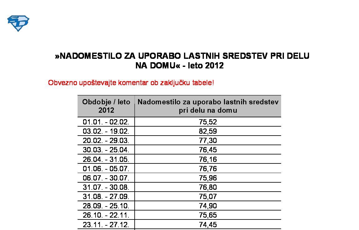 NADOMESTILO ZA UPORABO LASTNIH SREDSTEV PRI DELU NA DOMU - leto 2026 05.01.2026