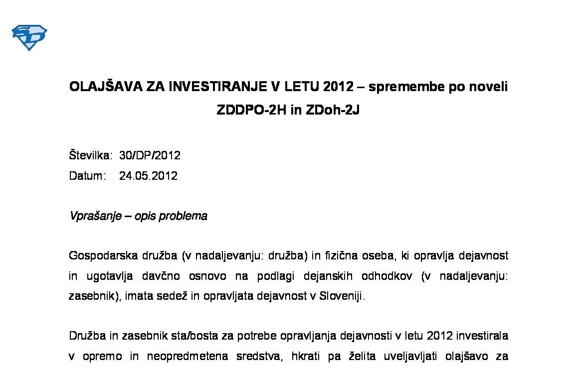 Olajšava za investiranje (55.a člen ZDDPO-2 oz. 66.a člen ZDoh-2) in olajšava za raziskave in razvoj (55. člen ZDDPO-2 oz. 61. člen ZDoh-2) SE medsebojno IZKLJUČUJETA.
