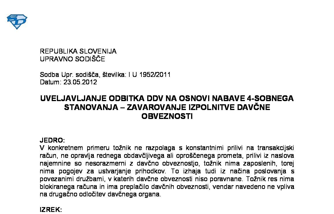 IZPOLNJEVANJE POGOJEV ZA DOBAVO BLAGA ZNOTRAJ UNIJE, OPROŠČENO PLAČILA DDV NA PODLAGI 46. ČLENA ZDDV-1 – Nepopolne CMR listine (I U 1704/2021-38) 27.11.2024 15.10.2025